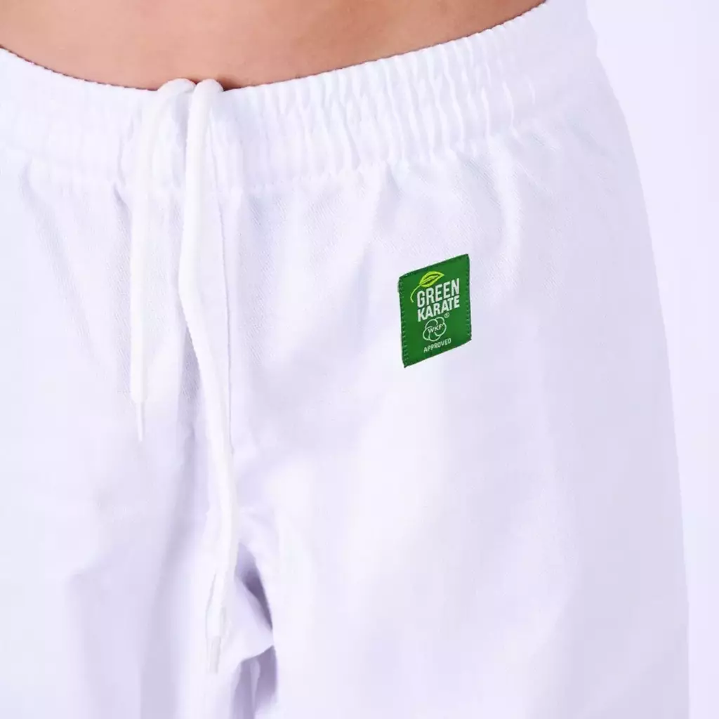 Uniforme leve e confortável de karate projetado para iniciantes de todas as idades, Composição da Jaqueta e Calça: Misto 60% algodão e 40% poliéster com 190grs m2 podendo variar +/- 5 grs, Calça com elástico na cintura e cordão para apertar, acompanha faixa branca. A mesma qualidade adidas reconhecida internacionalmente e a homologação da WKF Approved com a reestilização do logo da marca adidas em seu posicionamento global que retira a escrita "adidas" mantendo as tradicionais 3 listas da marca.